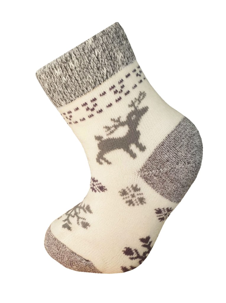 Detské zimné termoponožky Knebl Art.18 sú zimné ponožky s vianočným motívom sobov, určené do chladného zimného počasia. Zosilnené špičky a päty prispievajú k odolnosti ponožiek, zatiaľ čo elastan umožňuje, aby lepšie sedeli na nohe. Použitie špeciálnych vlákien a moderných výrobných technológií podporuje tepelnú izoláciu a ochranu detských nôh.