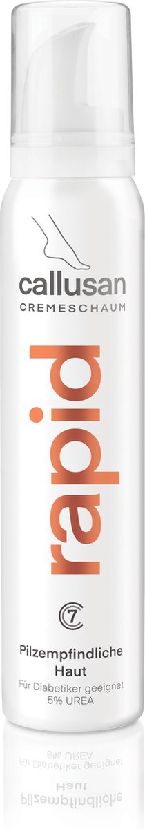 Callusan Rapid je účinná hydratačná krémová pena určená na suché nohy a pokožku náchylnú na plesne. Prináša rýchlu úľavu od nepríjemných pocitov suchosti a svrbenia, nemastí pokožku, ale príjemne ju zvláčňuje a obnovuje jej prirodzenú vlhkosť a pružnosť. Praktická penová forma je ideálna na použitie doma aj na cestách.