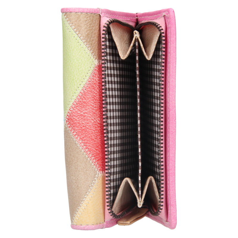 Dámska netradičná kožená peňaženka s dôrazom na vysoko elegantný dizajn. Vnútorné usporiadanie spĺňa praktickosť, ale aj podmienku elegancie a originality.