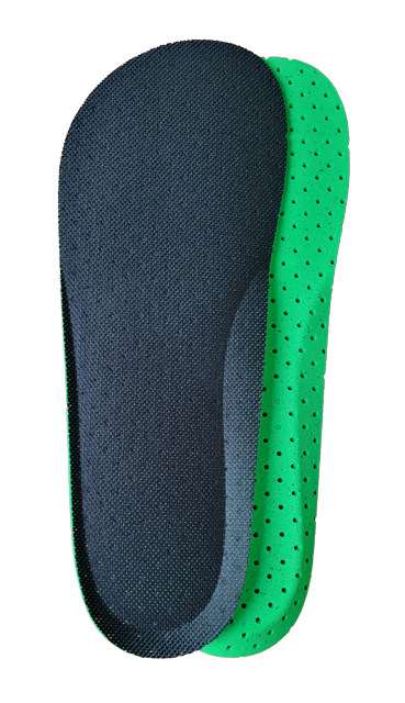- Vrchná vrstva – polyuretán: mäkká, savá a priedušná, zaisťuje pohodlie a príjemný kontakt s chodidlom.
