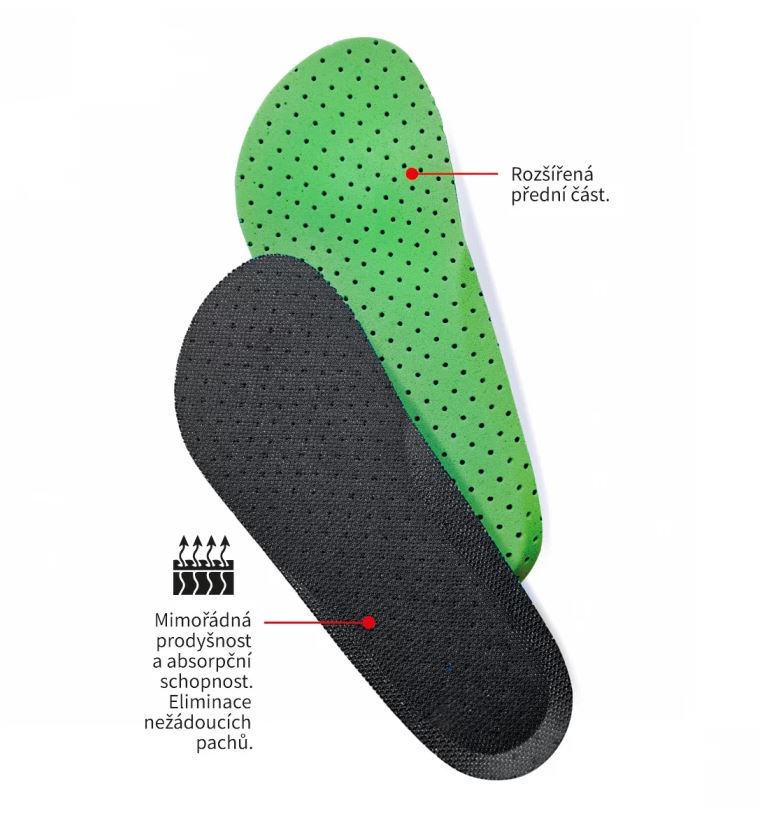 - Maximálna priedušnosť: perforovaná spodná časť podporuje prúdenie vzduchu a zabraňuje zapareniu nôh.